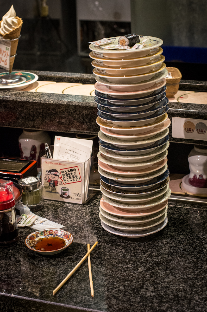 Un apéro plus tard, Pierrot a envie de sushis. Et le sushis, chez pierrot, c’est important. On trouve The restaurant à sushis d’Hiroshima sur tripadivsor. Une tuerie. Un tapis roulant, pas trop de plat. JL en choisit un (au soy bean logique; un maki qui tourne pendant 3 heures, seul JL le prend). C’est dégueulasse. Rien que d’y penser l’envie de vomir revient. On prend la carte. C’est tout de suite beaucoup, mais alors beaucoup mieux ! On se remplit la panse. Le kiff.