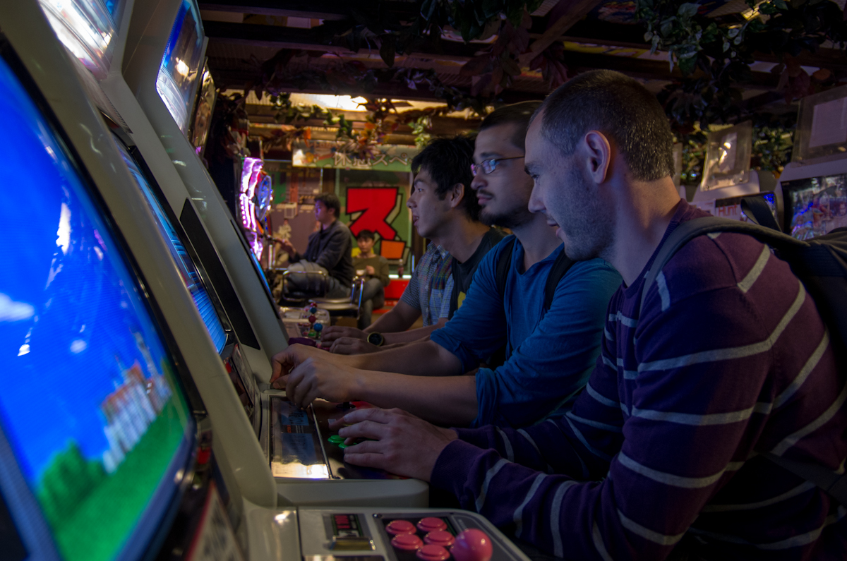 Levé… Aucune idée. JL avant. Pour lui, c’était direction Shinjuku et le magasin mapCamera pour constater l’engouement des japonais pour les appareils photos. 13h00, JL est revenu, tout le monde est douché. On peut commencer la journée. Le temps est encore mauvais, mais bon il ne pleut pas. Profitons en pour faire les courses. Direction le quartier électronique Akihabara. On espère trouver des babioles à ramener. Et bien, c’est pas évident. Il y en a tellement partout… On tourne un peu. Pierrot voulait un KFC pour manger, le hasard fait bien les choses. A noter, le KFC, au japon, c’est clairement pas ça… On ressort vite, l’estomac un peu plus rempli, c’était l’objectif. On enchaîne les boutiques, figurine, vieux jeux, tee-shirts et goodies en tout genre. Finalement, malgré le choix, on ne trouve pas grand chose. Heureusement, au détour d’un magasin, (ou plutôt à son 3ème étage) on découvre de vieilles bornes arcades. Une partie de Street of Rage, ça ne se refuse pas.