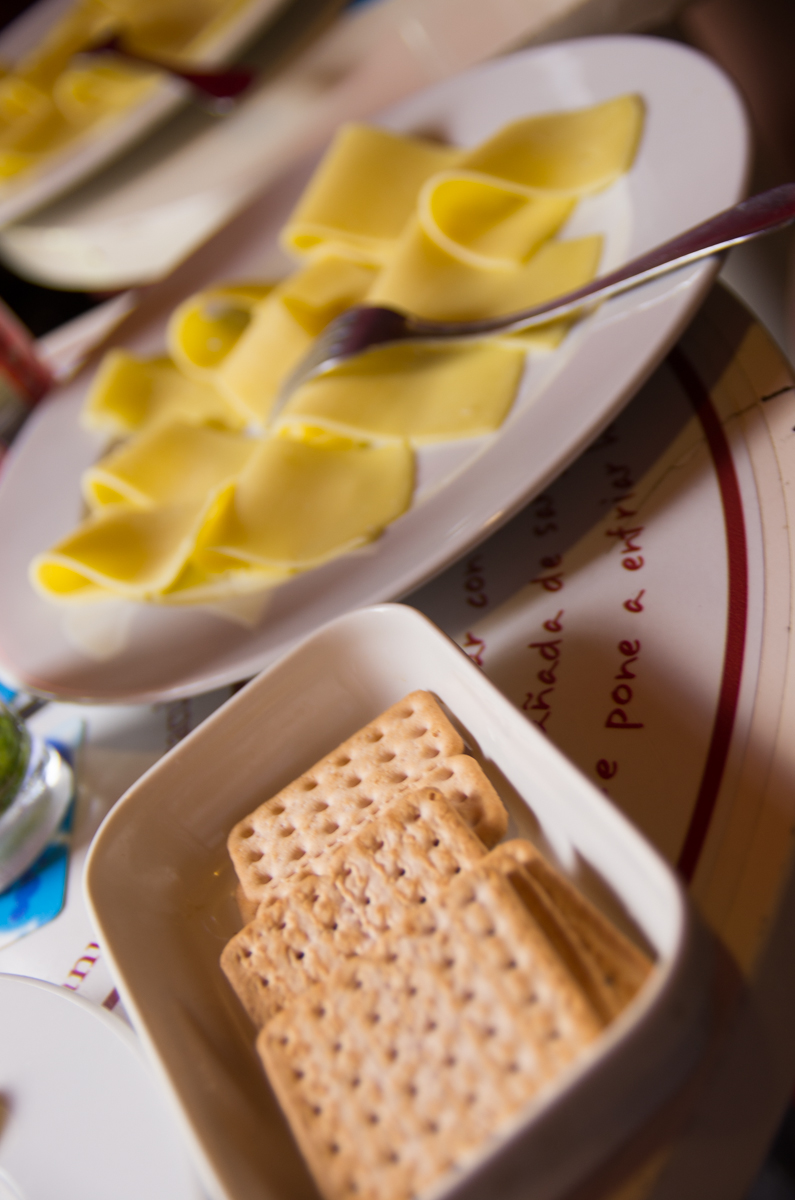 Tous ça nous a donné soif. A côté un resto fermé, ah non, un mec nous ouvre la porte. Dedans c’est noir, ok le concept c’est vampires… On commandes les bières, le 8e mojito de JL, un acetunas pour Yifan, un sandwich fromage pour Pierrot et trois jambon fromage pour terminer. On sert des olives dans une coupe de dessert à Yifan, il drague le serveur ? Ah non, c’est ça aceitunas, des olives, c’est parfait pour un repas. Au bout de 45mn et trois allées et venues du cuisto à l’extérieur, on se pose des questions, le verdict tombe, on a pas de jambon et des crackers à la place du pain, ça nous paraît parfait pour un repas… Coup dur.