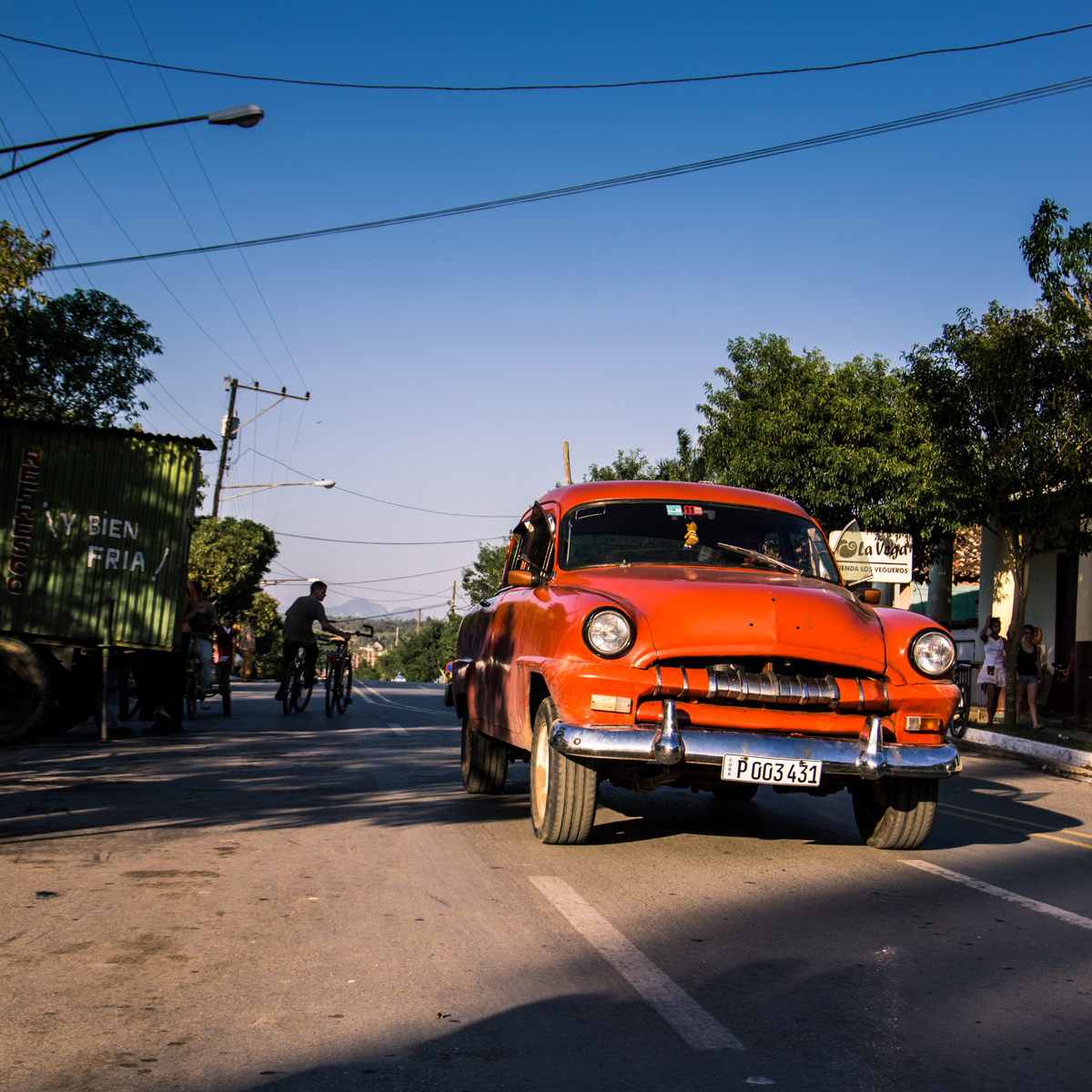 A la station de bus, une dizaine de taxi attends. Et en général, quand on voit une dizaine de taxi cubain attendant le touriste, mieux vaut s’éloigner discrètement…. Et évidemment, un couple de japonais arrive tranquillement à pied. Ils n’ont pas le temps d’ouvrir la bouche qu’une nuée de chauffeur de taxi les encerclent en criant des prix mi-espagnol mi-anglais, traumatisant littéralement le couple. Yifan, solidarité asiatique oblige, va les aider et les libère des chauffeurs. Les visages sont vraiment décomposés. Quand la glace du japon rencontre le feu cubain, forcément… ça fait de l’eau. Pas de chance pour eux, ils ne parlent ni anglais, ni espagnol… On ne saura jamais s’ils ont compris Yifan leur indiquant d’aller un peu plus loin.