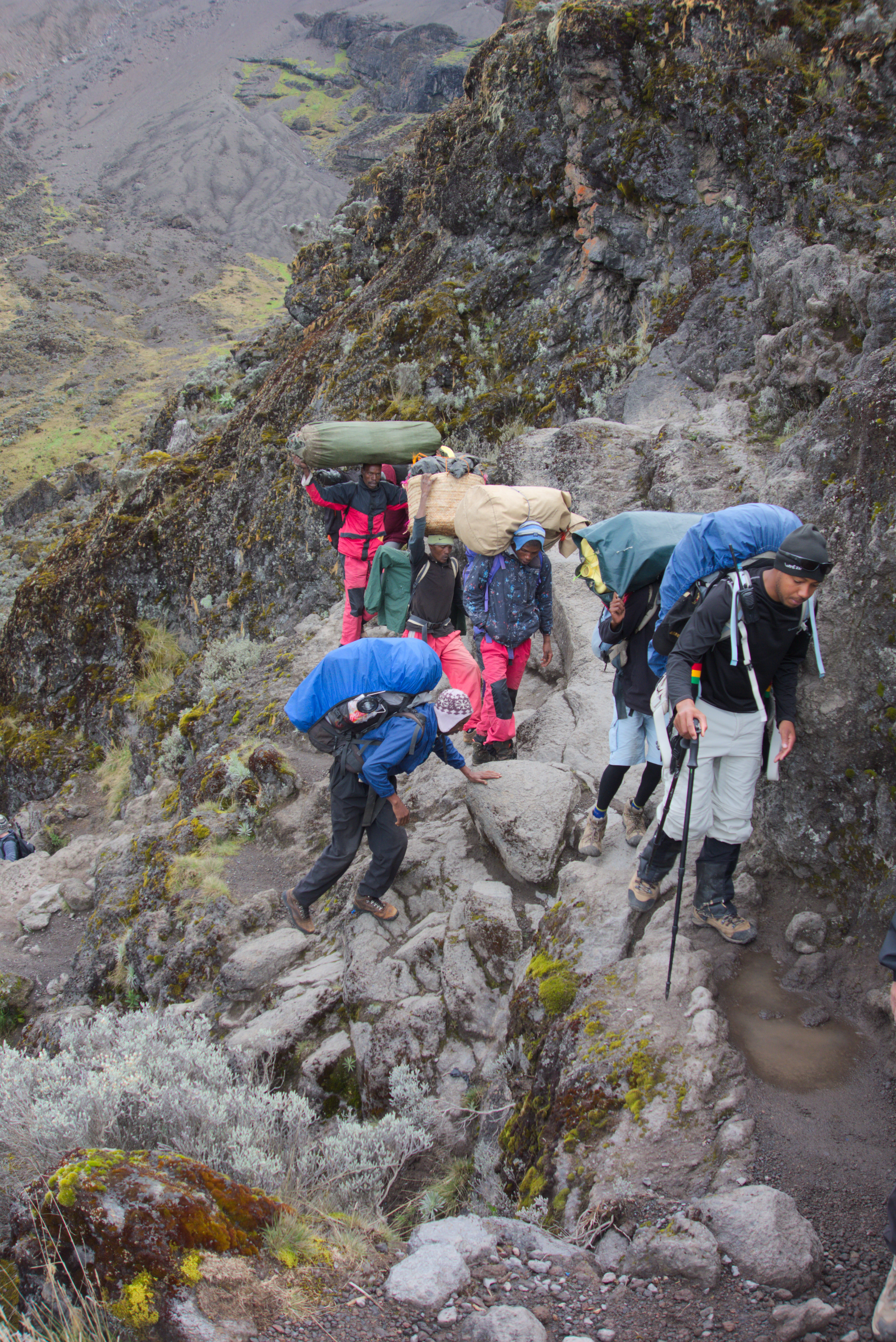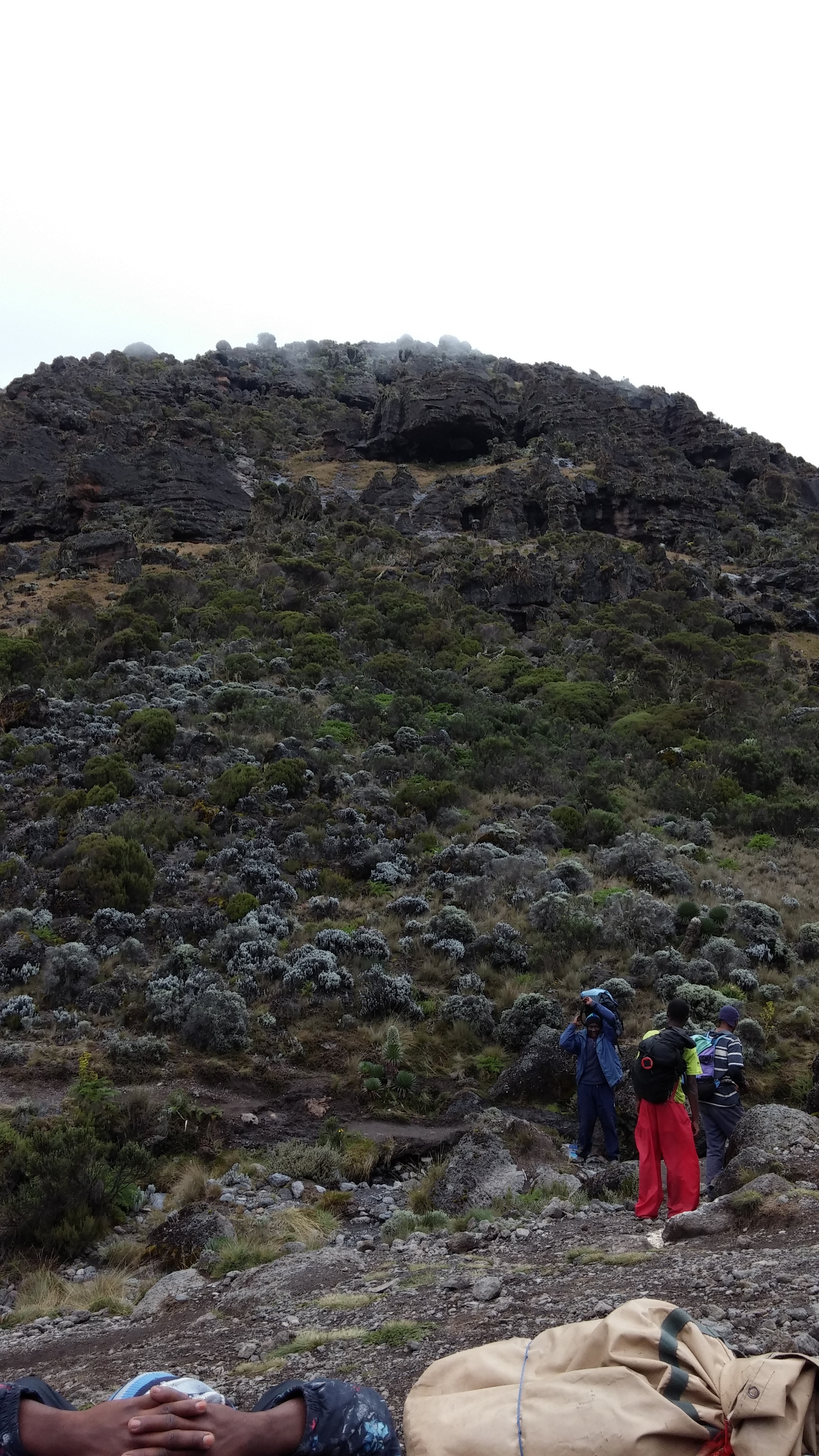 10h22: On arrive au pied d’une montée trés trés raide. On en profite pour faire une pause Diamox!! En bas de cette montée se trouve le dernier point d’eau avant Barafu. Les porteurs doivent donc prendre l’eau dans des bidons de 20L et les monter jusqu’au prochain camp. C’est clairement un effort surhumain. Nous avons mal pour eux sachant que cette eau est principalement destinée à notre usage. Encore une fois nous leur tirons notre chapeau et les en remercions encore. Cela fait partie de ces scènes qu’on ne peut pas oublier et que l’on associera à notre ascension.