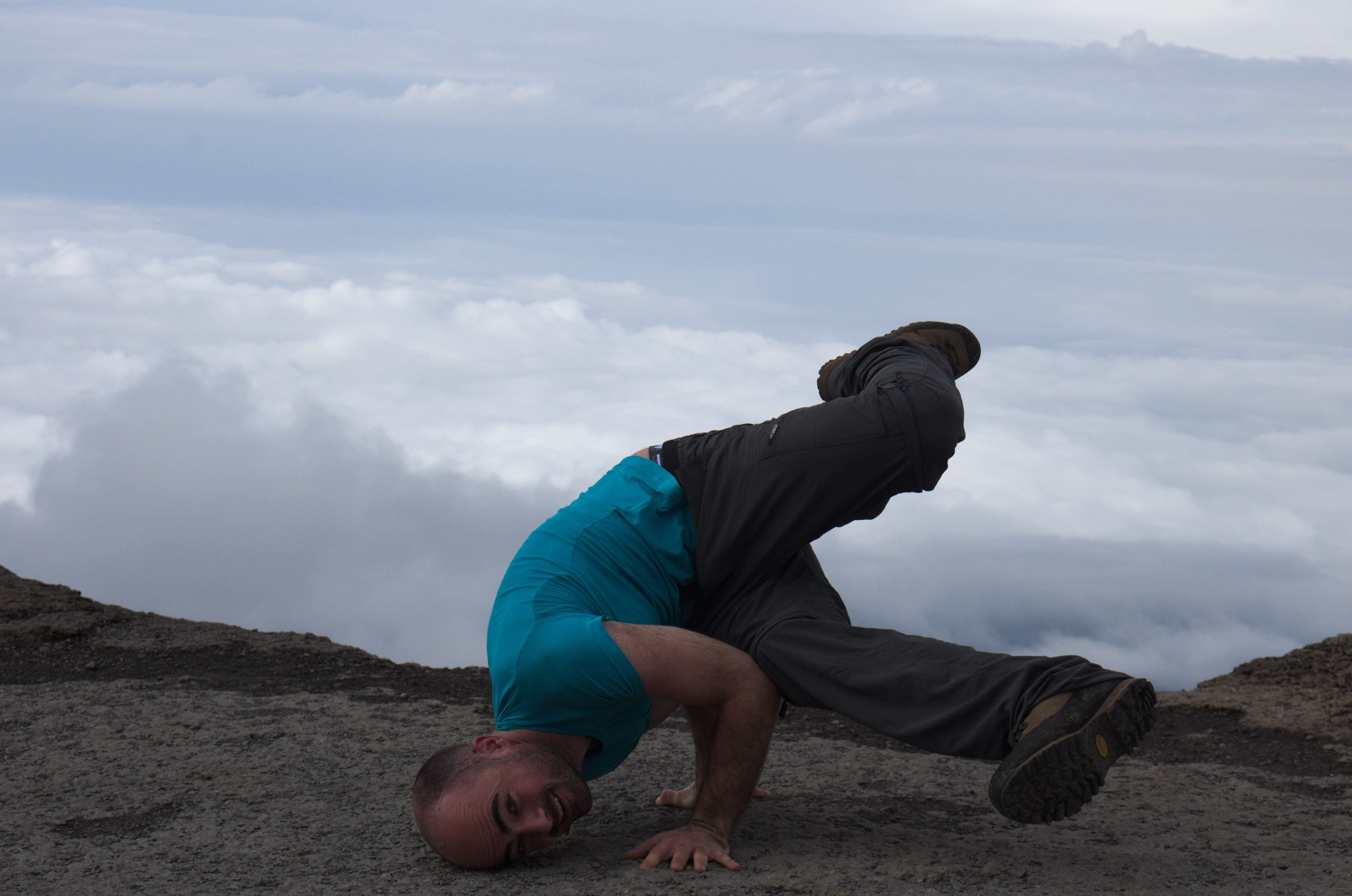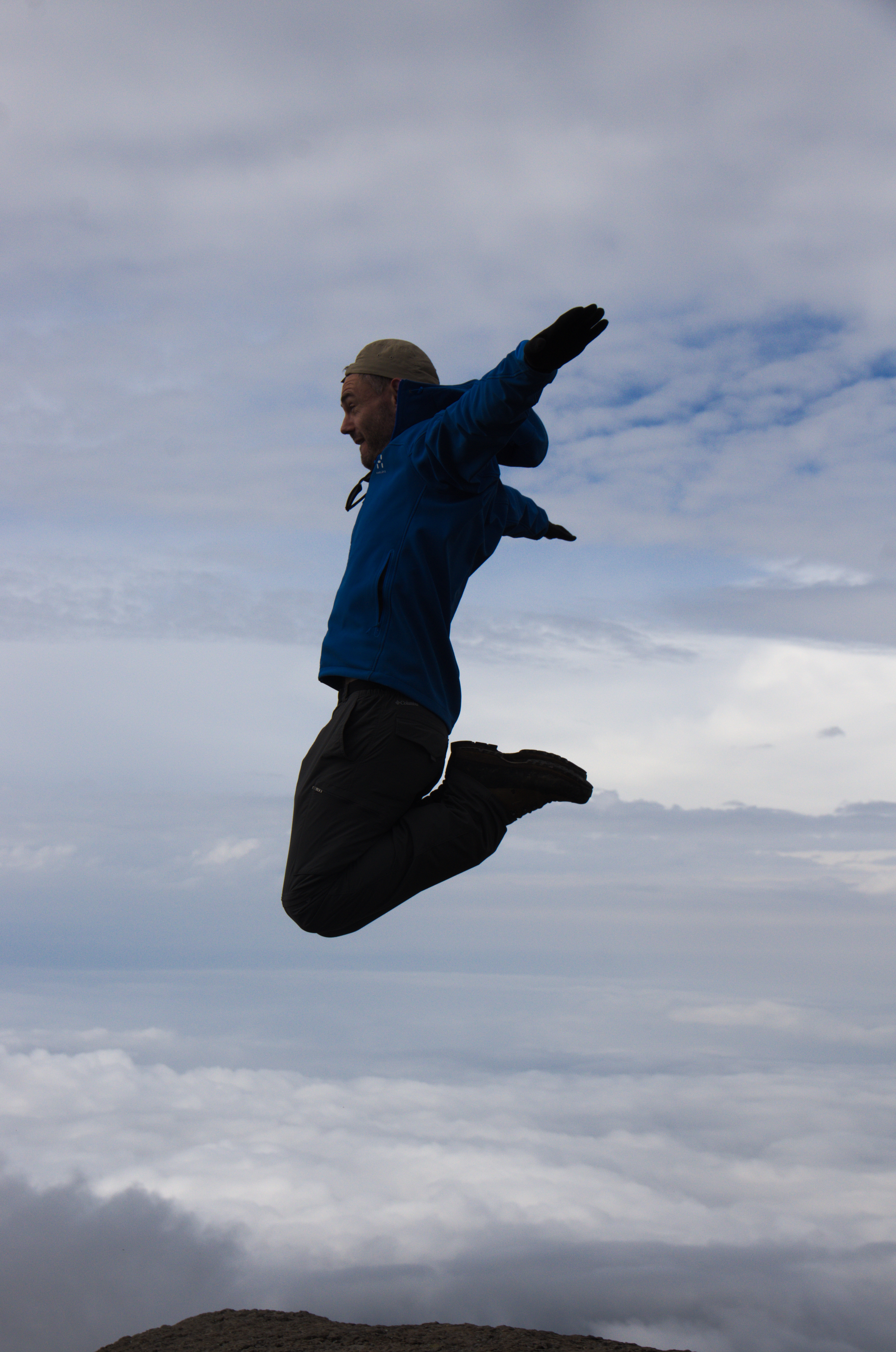 23h00: Réveillés par GoodLuck. On fait les sacs rapidement puis on va prendre le petit déjeuner sous la tente mess. On est déjà bien équipé pour aller au sommet : pantalon ski, collant, 3 à 5 couches en haut, chaussettes en laine. Nestory et Edou nous font un dernier briefing. Ils ont le sourire (comme d’habitude), un sourire communicateur qui dans des moments comme celui-là fait plaisir à voir. Pour nous remotiver Nestory nous explique que l’ascension : « C’est pas facile mais c’est pas difficile ». Cette phrase nous laisse perplexe avec nos esprits cartésiens occidentaux. On mesurera le vrai sens de cette phrase le lendemain.