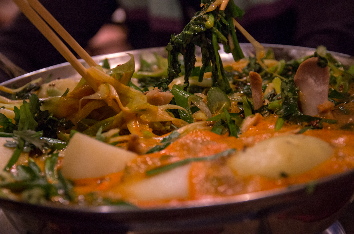 Retour à l’appartement, la soif se fait sentir. Deux rues plus loin. Un bar. 3ème étage. 4 salles, parfait pour un Karaoké… Il y a du monde, deux serveurs… Mais pourquoi on est là ? Une bière plus tard, Direction le Coréen d’à côté pour un barbecue. On a fait cuire une salade, allez comprendre…